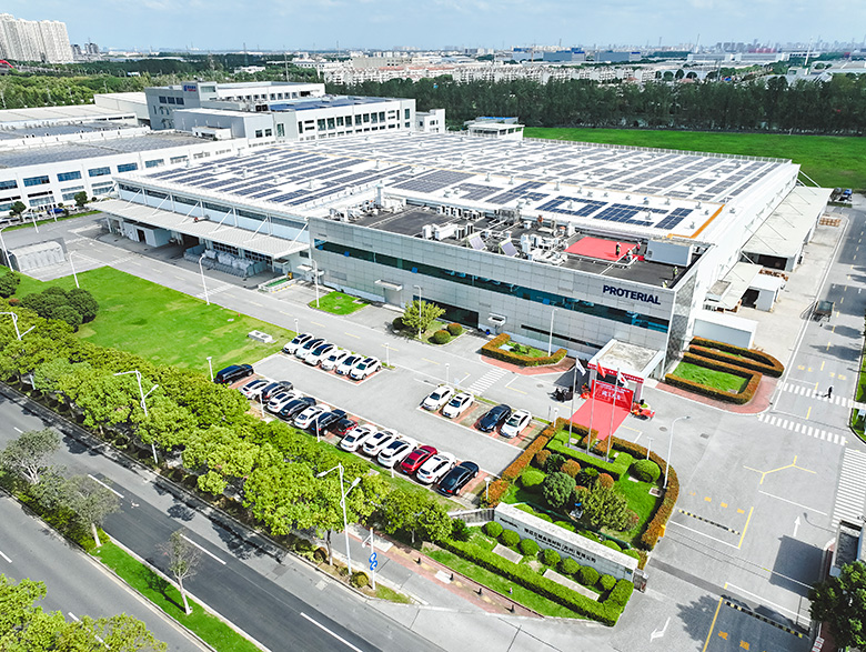 Proterial introduced captive use solar power equipment at several production bases in China, specifically at Proterial Specialty Steel (Dong Guan) Co., Ltd. (Guangdong Province, China), Proterial Cable (Suzhou) Co., Ltd. (Jiangsu Province, China) and Proterial Metals (Suzhou), Ltd. (Jiangsu Province, China). They have an approximate total output of 8 MW (7,683 kW), and it is expected that they will reduce CO2 emissions by around 5,500 tons a year.